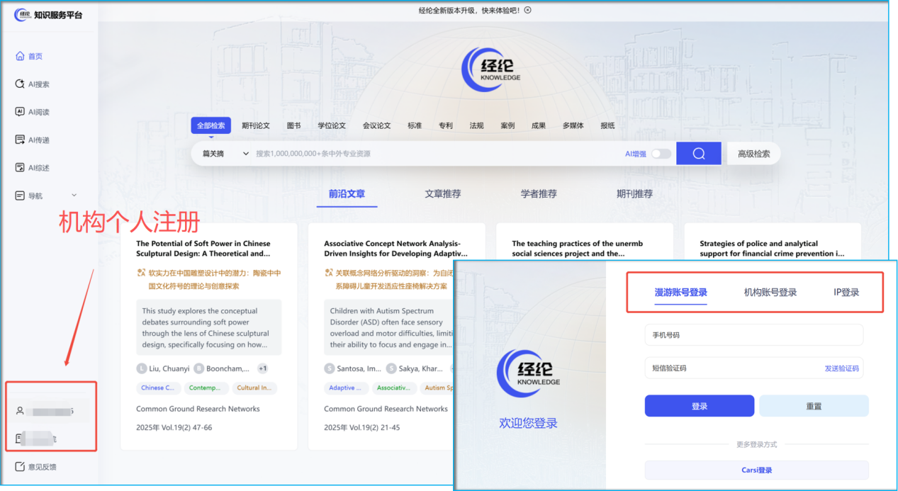 2.个人漫游账号注册完成并登陆后,不受IP范围限制可随时随地使用平台;